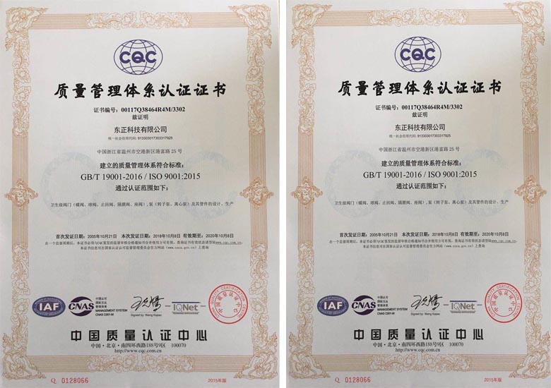 由中國質量認證中心 CQC 實施的 ISO9001 質量管理體系,且獲得通過;