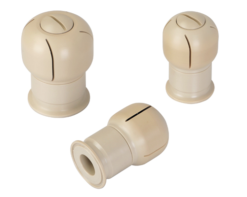 清洗半徑:最大4米(4bar) 清洗角度:180°;270°;360° 球形選擇:橢圓形球 球尺寸:28mm / 45mm / 65mm / 75mm 材質:PEEK 連接方式:卡箍(1"-2.5")