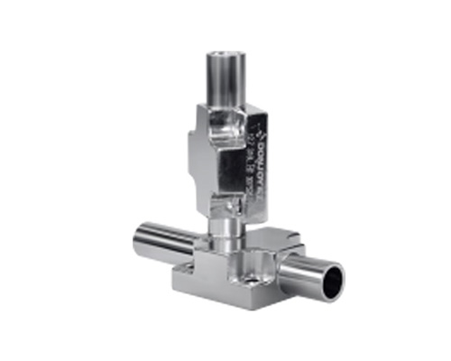 主要運用在高純水或其它分配系統(tǒng)的用水點垂直管路上,可有效減少管路死角。其中一個閥水平放置,并保持一定自排空角度,另一個閥是主閥,垂直放置,當該閥打開時,其出口就是一個沒有細菌滋生或受工藝交叉感染的取樣口。